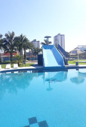 Um belo tobogã , para crianças e adolescentes até 14 anos se divertirem.